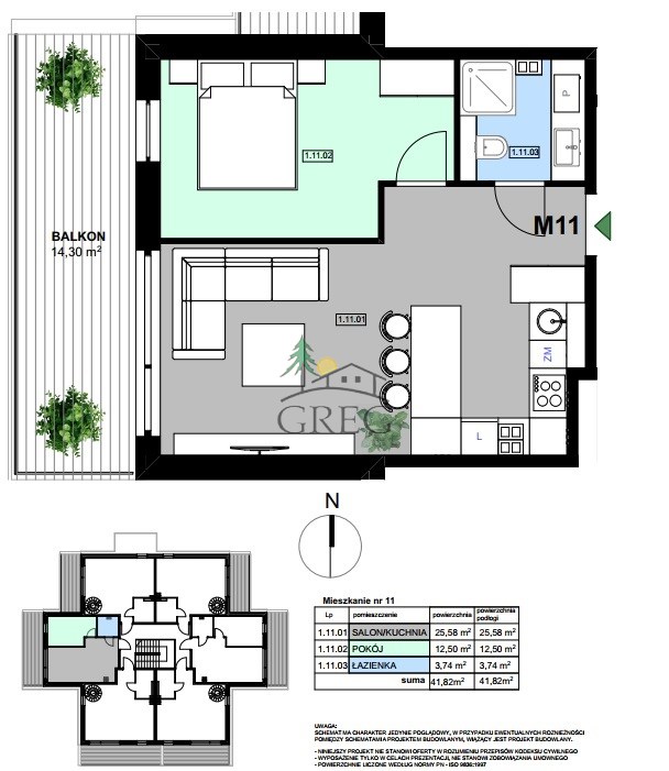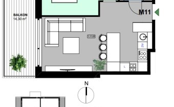 Prezentowany apartament M11 usytuowany będzie na 1 piętrze budynku B, który jest w trakcie realizacji. W tym budynku wszystkie mieszkania są wolne, do dyspozycji klientów.